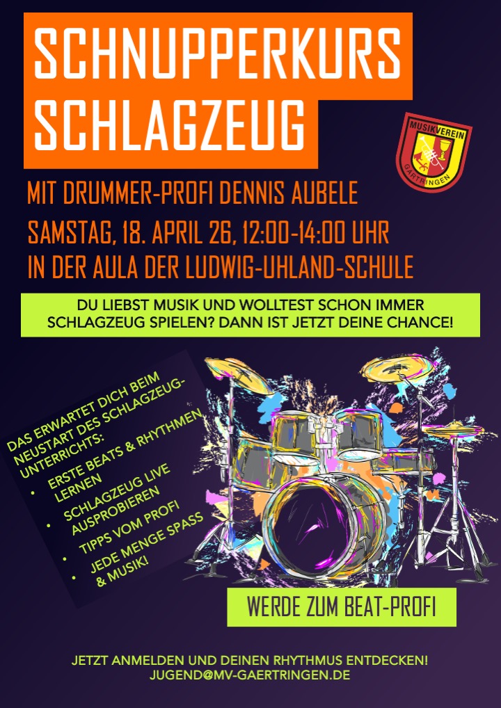 Schnupperkurs Schlagzeug 18.4. 12-14 Uhr